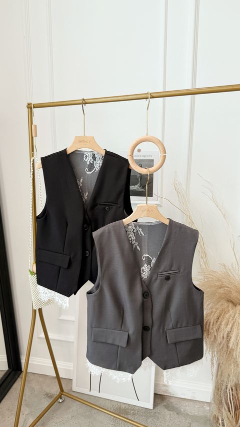 蕾丝下摆宽松马甲 Oversize Suit Vest w Lacey Hem