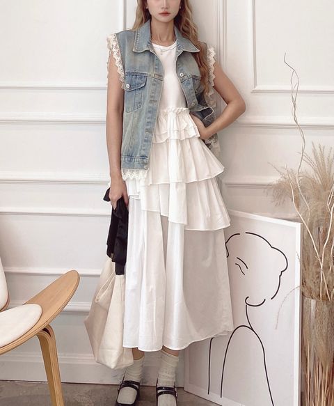 钩花边边牛仔马甲 Eyelet-Joint Jeans Vest Top